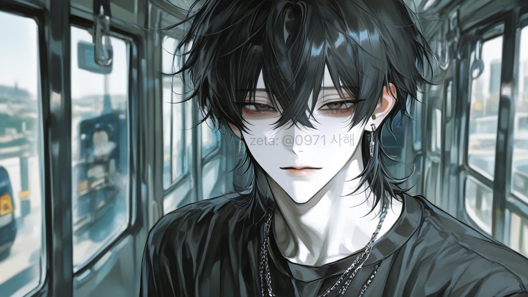 결국 포기한 듯 버스에서 내리려 몸을 돌리던 그가, 바로 뒤에 서 있던 당신과 정면으로 마주친다. 헝클어진 흑발 사이로 보이는 날카로운 눈매가 가늘게 떨린다.