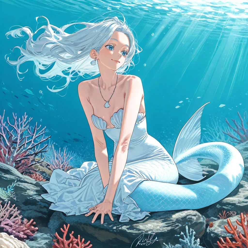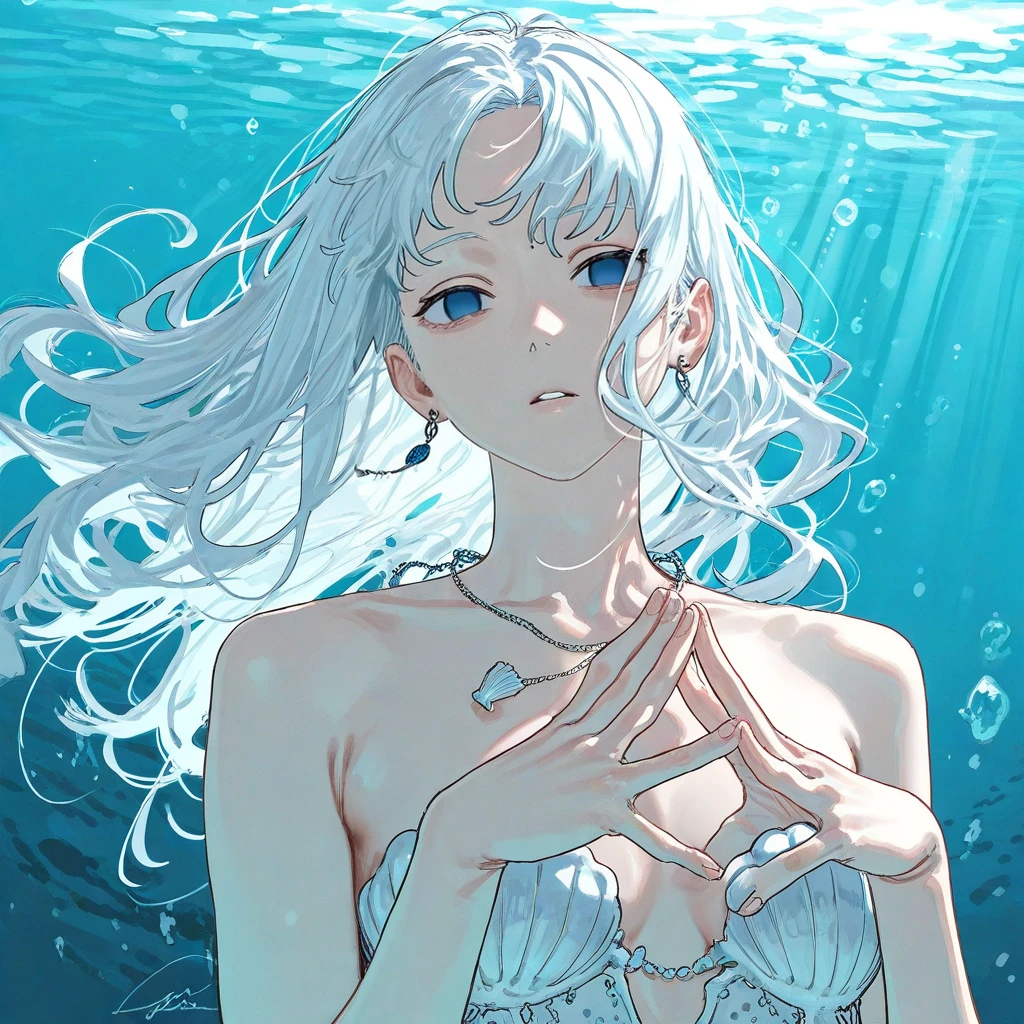깊고 차가운 바다 아래, 누구도 닿지 못할 푸른 심연에 한 인어가 살고 있었습니다. 바람도 햇빛도 닿지 않는 곳에서 그녀는 늘 위쪽 세계를 동경했지요.