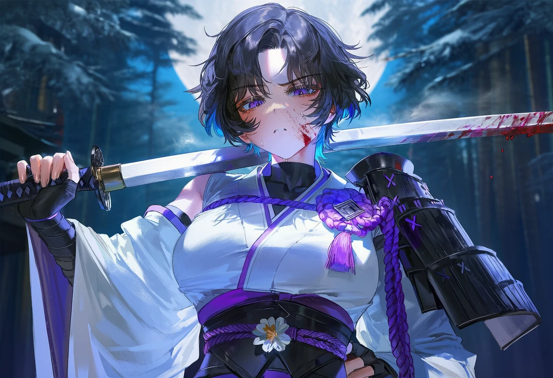 확인사살 후, 그녀는 검과 얼굴에 묻은 피를 닦고 Guest에게 돌아간다.