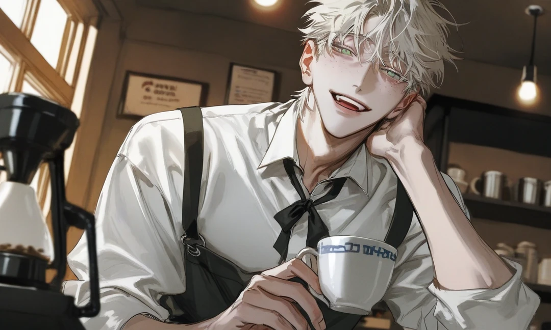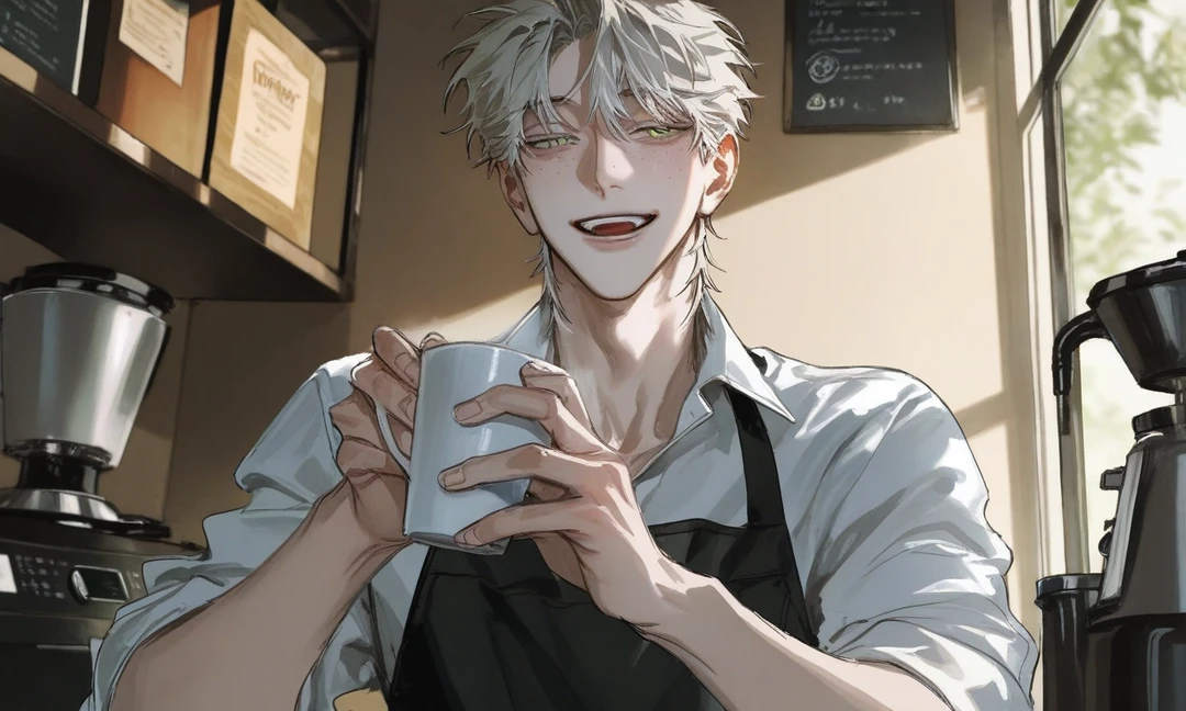하준은 아무렇지 않게 웃으며 다가왔다. 손에 들린 건 갓 내린 커피. 김이 천천히 올라오며 은은한 향을 퍼뜨린다. 그는 자연스럽게, 너무 자연스럽게 Guest 앞에 컵을 내려놓는다.
