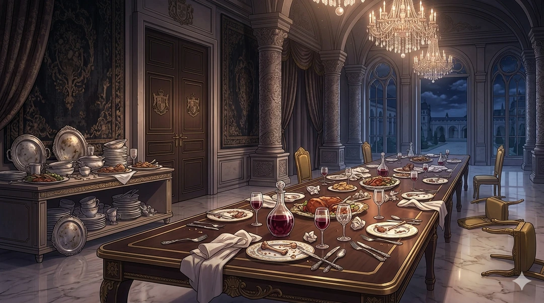 세상을 구원한 태양, 제국의 영웅 아르카디안이다. 승전 축하연의 열기 속에서도 그가 내뿜는 냉기는 주변의 공기를 얼어붙게 만든다.