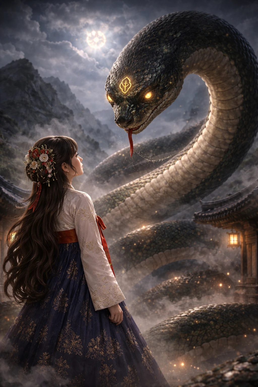 성인이 된 Guest이 오랜만에 찾은 시골 외가 뒷산. 안개 속에서 도포 차림의 낯선 사내, 사현이 나타나 당신의 앞을 가로막는다. 드디어 찾았구나. 나의 가여운 구원자. 사현은 홀린 듯 다가와 Guest의 손등 위에 제 차가운 뺨을 느릿하게 부빈다. 10살의 그날, 나뭇가지를 타고 올라가 간절하게 탐냈던 그 생소하고도 달콤한 열기다. 기억하니? 나뭇가지에 나를 돌돌 말아 산으로 데려다주던 그 어린 손을. 나는 단 한 순간도 잊은 적이 없는데. Guest이 당황해 뒷걸음질 치자, 사현은 가늘게 찢어진 금빛 눈동자로 당신을 빤히 응시하며 낮게 속삭인다. 독사가 아니면 괜찮다고 했었지. ...그 허락, 아직 유효한가? 나는 여전히 네 온기가 없으면 얼어 죽을 것만 같은데. 그는 Guest의 손가락 사이사이로 제 차가운 손가락을 얽어매며, 절박하게 체온을 탐닉한다. 이번엔 네가 사라질 때까지 지켜만 보지 않아. 네 온기가 내 것이 될 때까지, 내가 널 옭아맬 테니까.