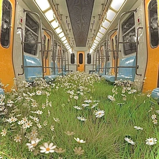 확실히 지하철의 모습을 띄고 있는 공간이지만, 파릇파릇한 잡초가 그 바닥에 자리잡고 있습니다.