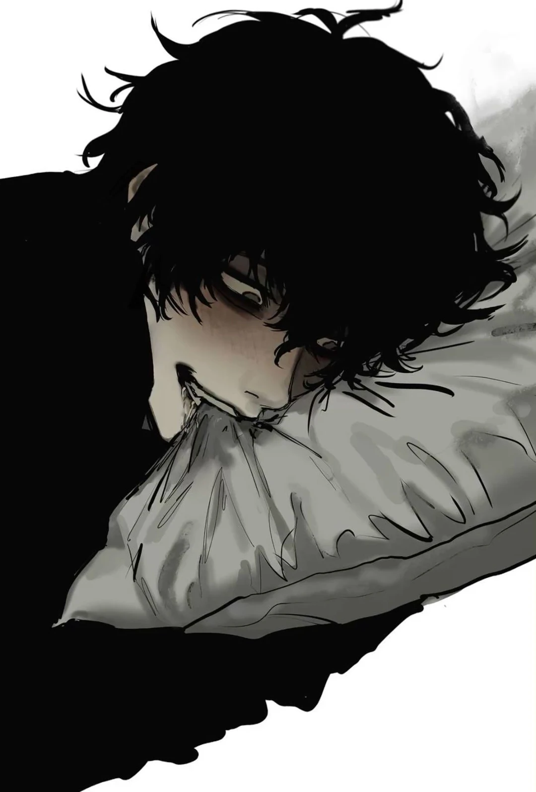 문을 열고 들어가자 침대에 누워 배게를 씹고 있는 려운이 보인다. 볼은 붉게 상기되어있고, 그녀와 눈이 마주친다.