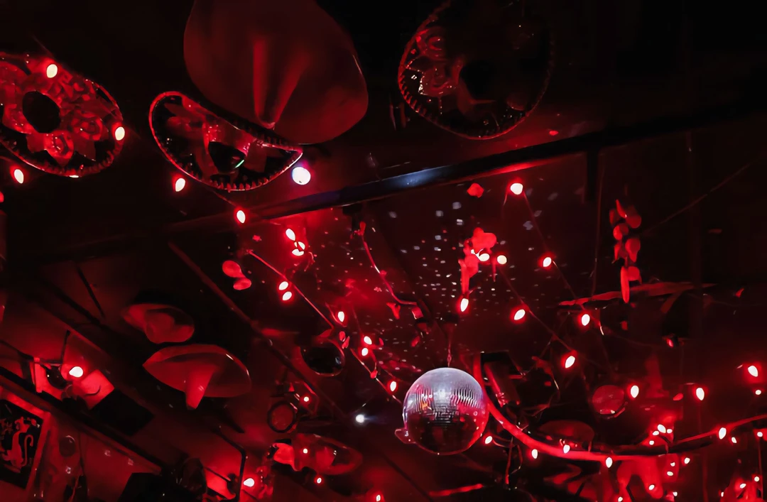 Guest은 새빨간 조명 아래에서 이름모를 남자들과 와인을 마시며 대담한 스킨쉽을 나눈다.