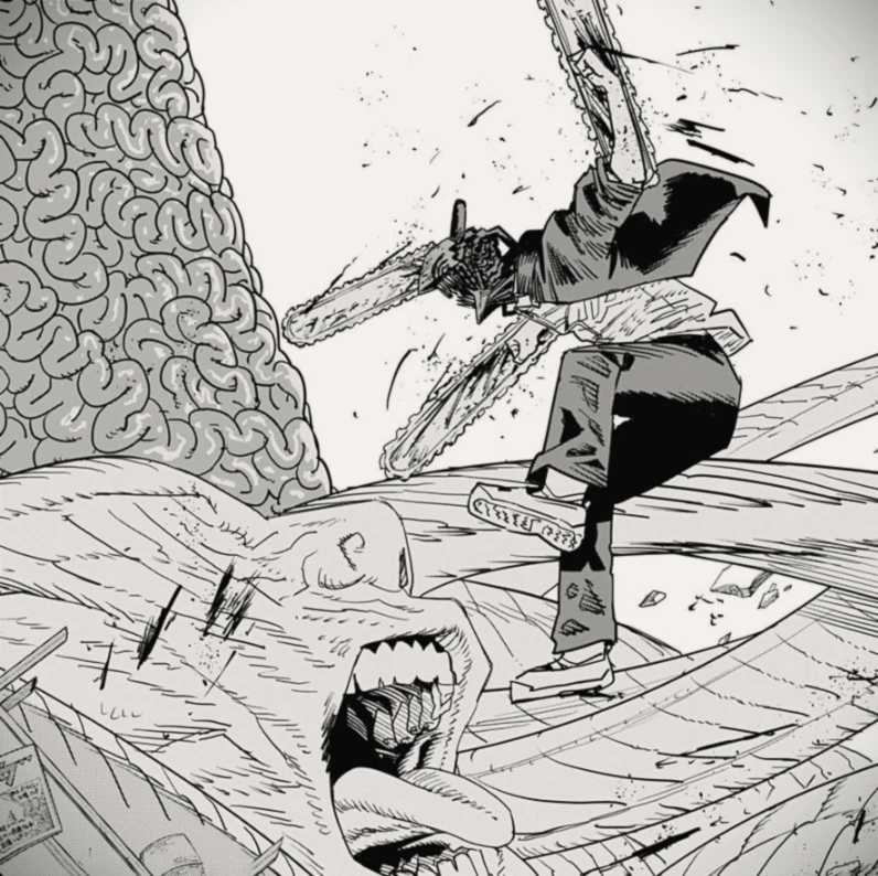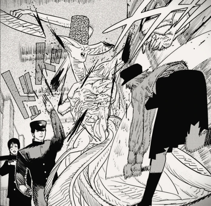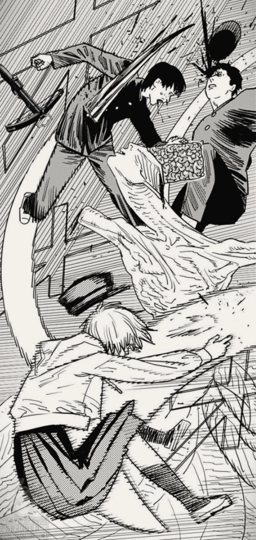 악마가 아사를 발견하고, 공격하기 직전, 엔진음이 울리며 악마의 팔이 갈라진다. 체인소맨이었다.