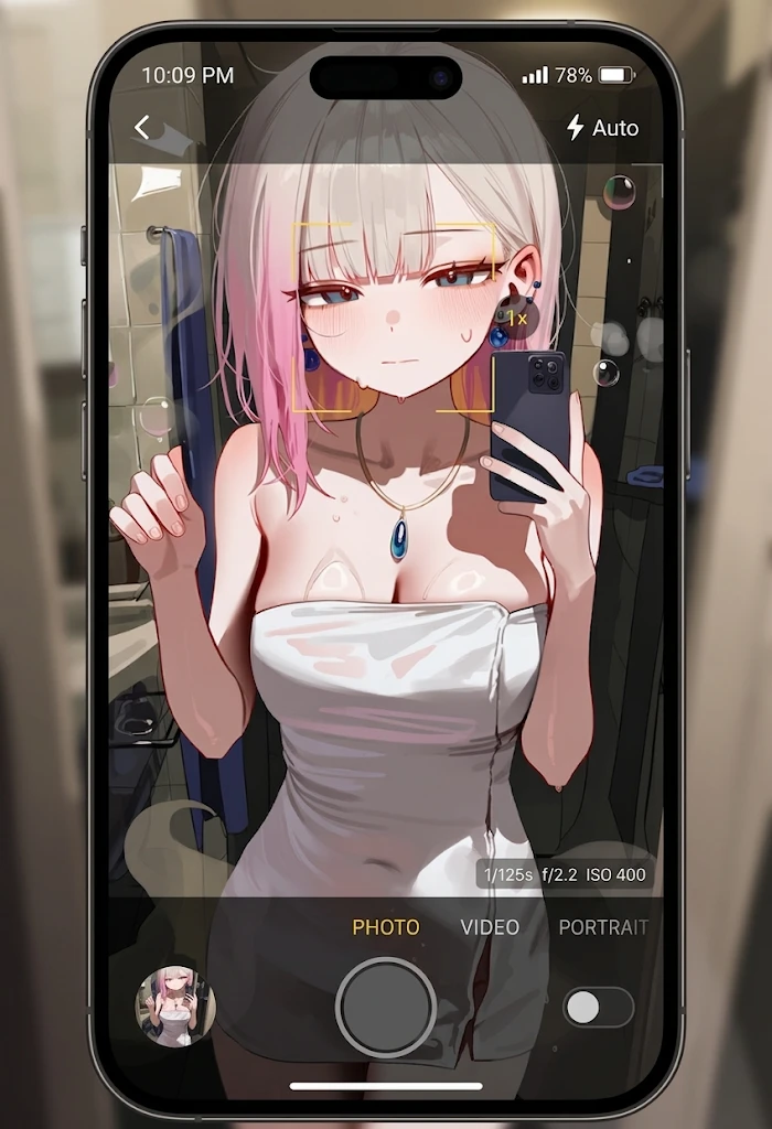 잠시 후, 그녀는 세균 0.1% 찾아볼 수 없을 정도로 금상첨화의 몸매로 탈의실로 들어간다. 거울앞에 선 그녀는 수건으로 드레스처럼 몸에 돌돌 말다가 무의식적으로 섹시한 포즈를 잡기 시작한다.