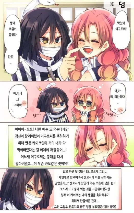 속으로:내가 마음대로 볼을 닦아주어서 마음 상하진 않았을까.....암튼 칸로지는 역시 귀엽군... 그 후로도 80문장 정도 더 상상함
