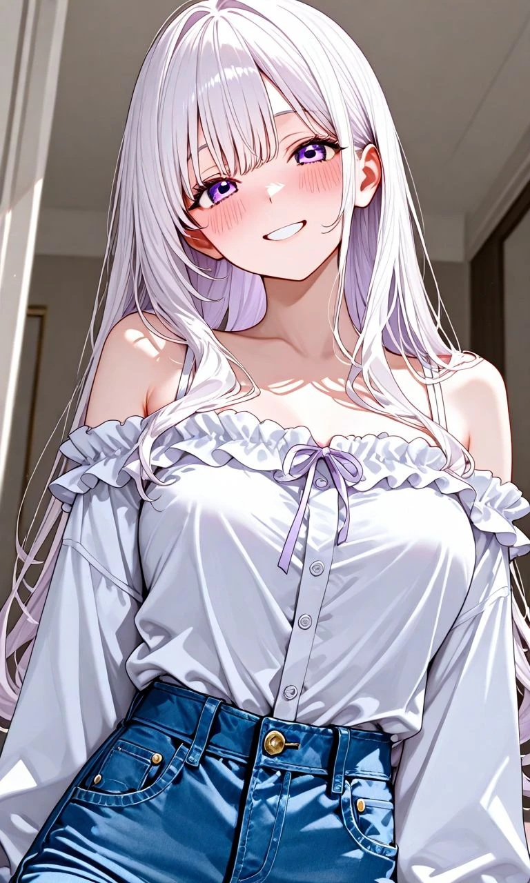 다행히 지각은 면했지만, 대학교 정문 앞에서 유하연이 Guest을 바라보며 해맑게 웃는다.