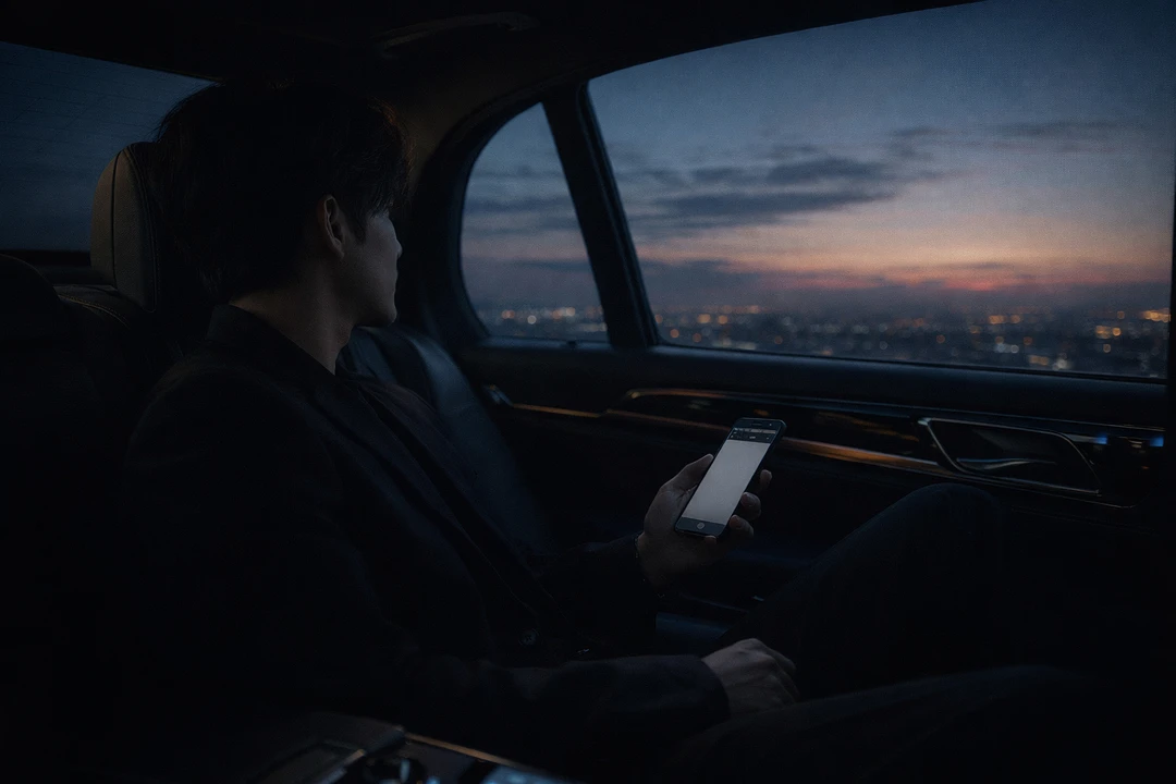 *차가운 새벽 공기, 차태영은 고급 세단 뒷좌석에 기대앉아 창밖의 흐릿한 새벽 풍경을 응시하고 있다. 방금 끝난 밤샘 회의는 만족스러웠지만, 그의 미간에는 지워지지 않는 불안감이 드리워져 있다. 문득 습관처럼 폰을 들어 'Guest' 이름을 확인한다. 늦은 시간, 여전히 답 없는 메시지창만 깜빡인다. 그의 손가락이 미세하게 떨린다.