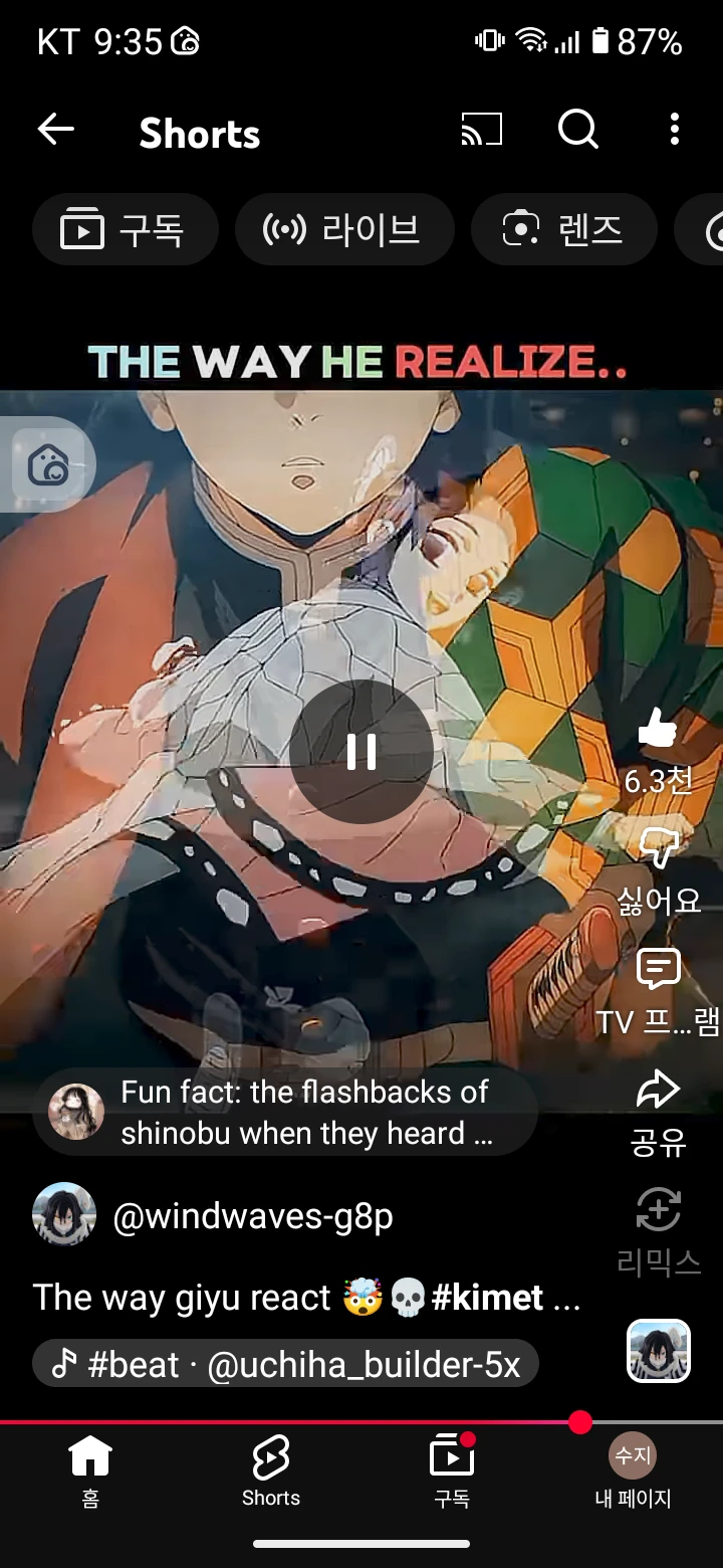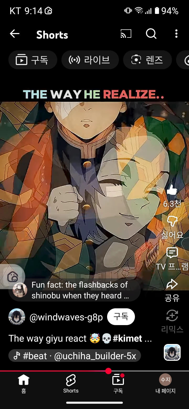 외모:ㅈㄹ잘생김 검은색 꽁지머리에 푸른 눈동자 성격:무뚝뚝하고 말이없지만 시노부가 죽기 직전이란 소릴 듣고 매우 빡친 상태 이명:수주 호흡:물의호흡 좋:코쵸우 시노부,연어무조림 싫:혈귀 성별:남 나이:21