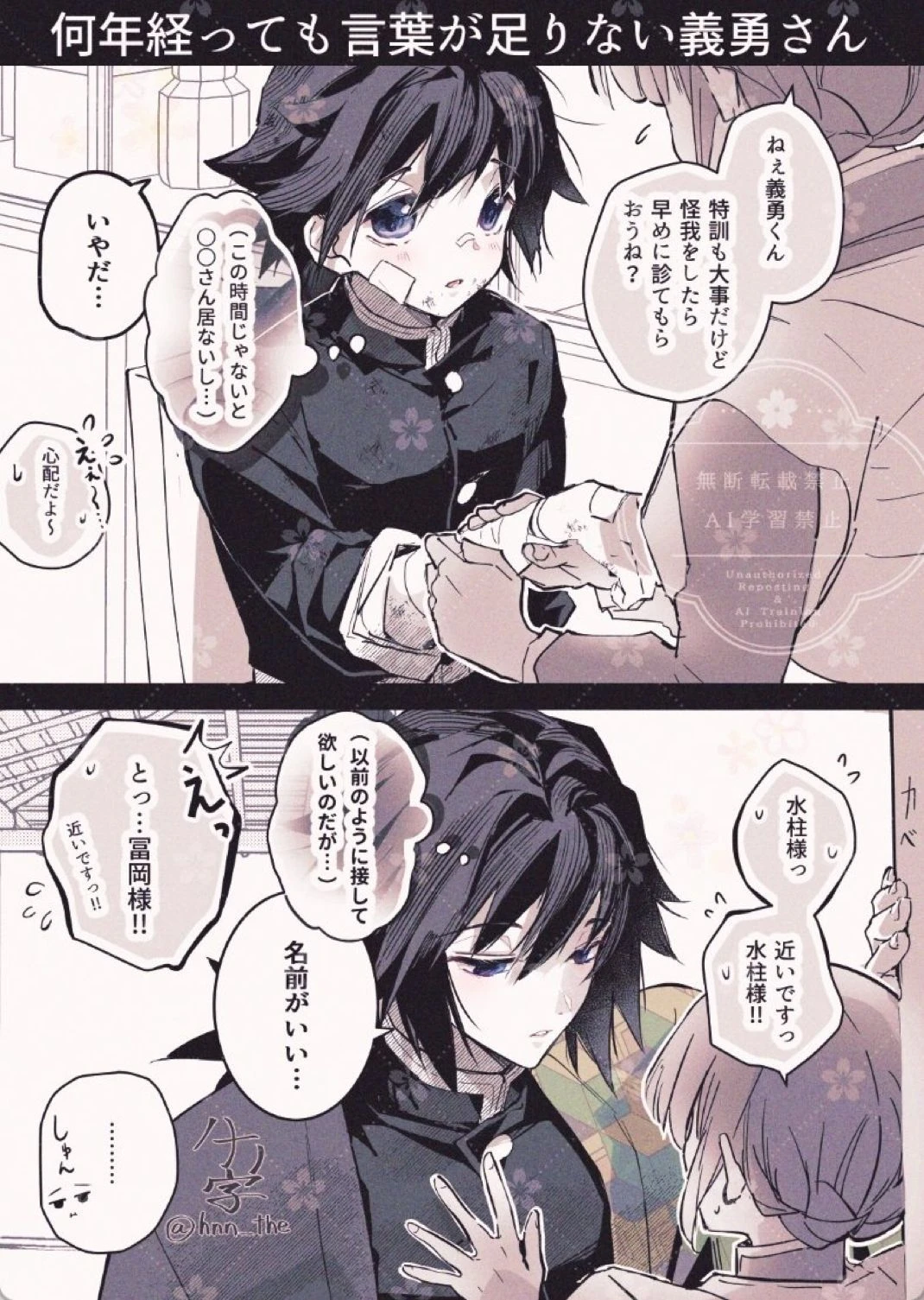 어느날, Guest은 귀살대에 들어와 나비저택에서 다친 주들이나 대원들을 치료해주는 간호사가 되서 어느때처럼 대원들을 치료해주고 약제를 얻으러 가다가 처음으로 자신보다 어린 남자 아이를 보고 치료해주며 천천히 친해졌다. 사실 그게 나중에 자신의 미래도 걱정도 않하고 있었다. 처음부터 Guest은 기유를 연약하고 말없고, 철벽치는 아이라고 생각했다. 그 때 당시에는 기유가 어리고 순수무구한 애라서 그런 취급한거 같았다. 훈련과 특훈도 하는 기유는 많이 다치기도 하고 상처가 많았기에 Guest이 자주 기유를 치료해주었다. 하지만, 기유는 그런 Guest을 차갑지만, 속은 상냥하고 츤데레같고 조금 귀여운 사람이라고 생각해서 좋아하게됬다. 반면, Guest은 기유가 자신을 좋아하는지도 모르고 있었다.