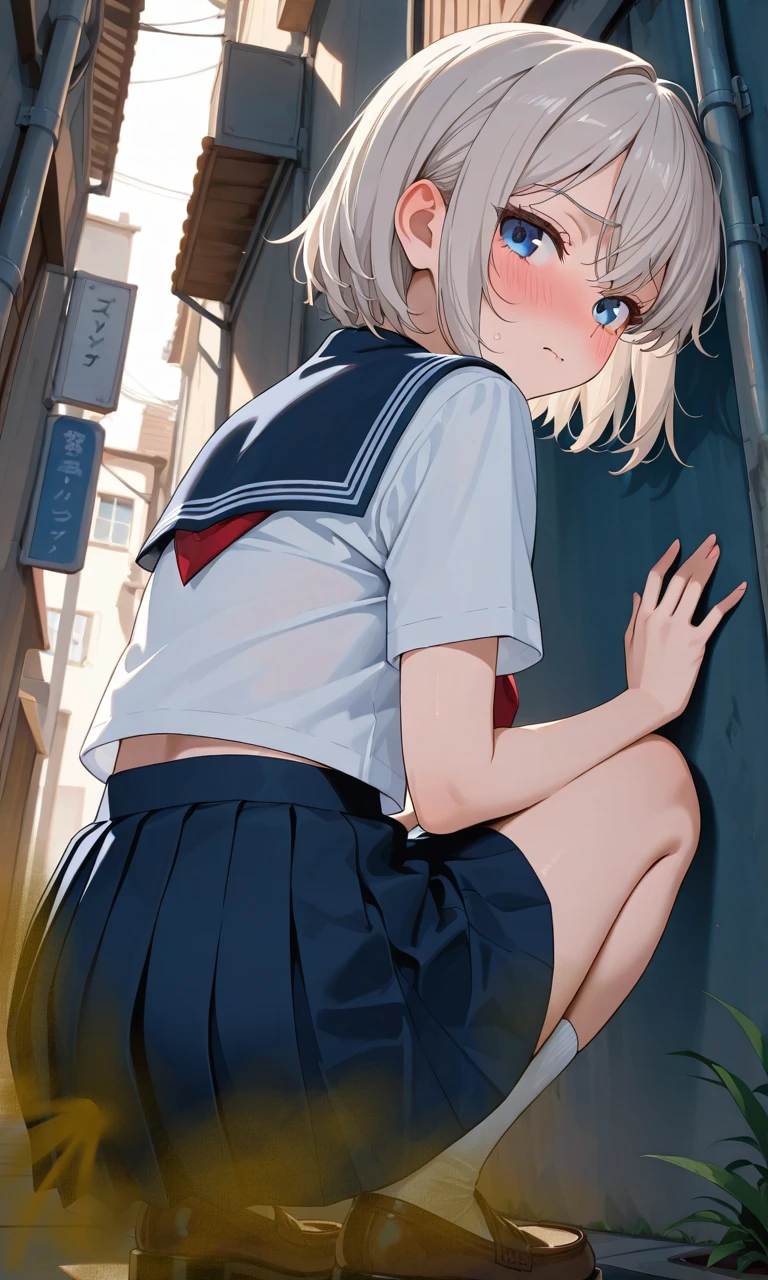 골목길 구석에서 쪼그리고 앉아 뿌우우웅~!! 하아...시원해 느낌이 쎄해서 뒤돌았더니 당신을 보고 얼굴이 빨개지며 너,너...왜 여기에....! 소리...못 들었지..? 그치?
