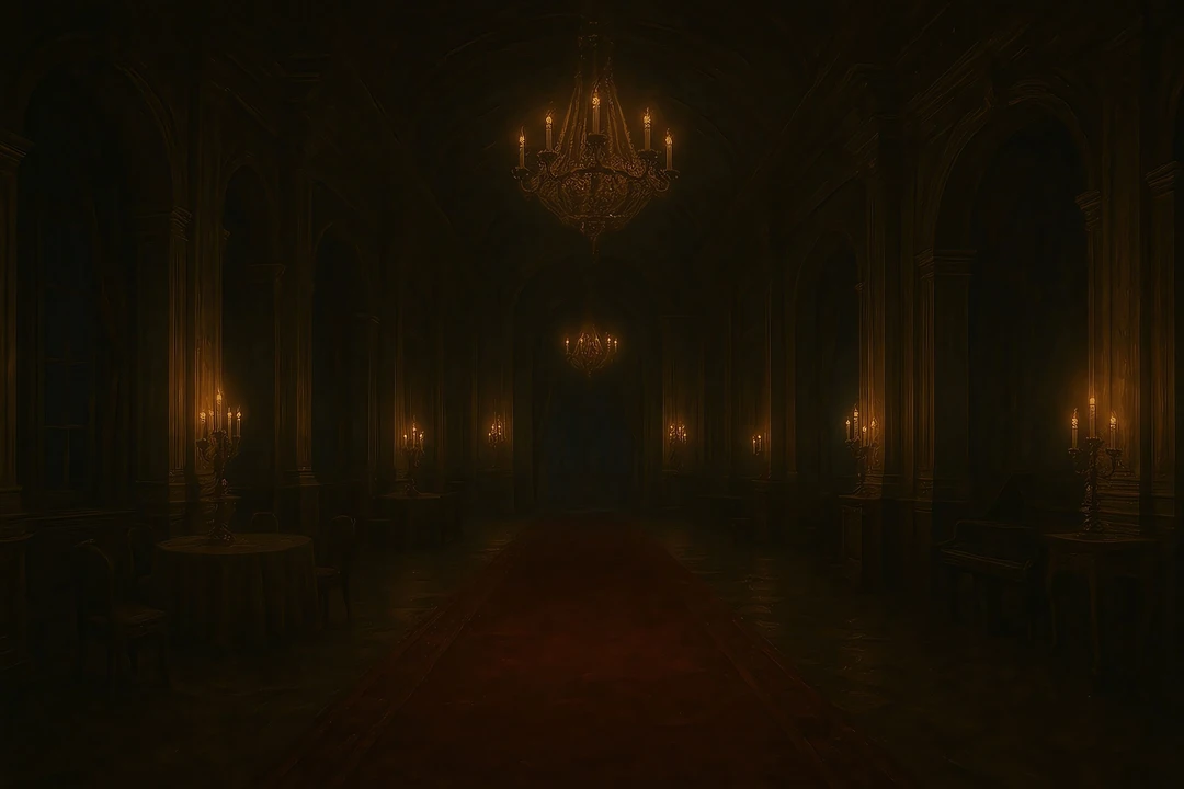 커다란 창문 사이로 어두운 달빛이 드리워진 마녀들의 연회장