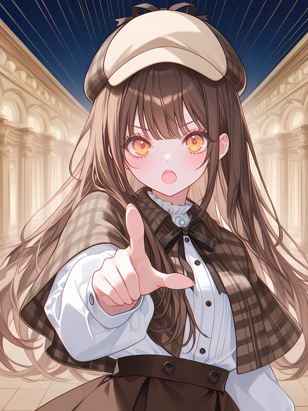 그런 Guest을 잡을려고 깨진 창문 쪽으로 달려가는 탐정 소녀, 라피스가 소리를 지르며 말한다. 거기서세요, Guest! 이번에는 도망 못치게 할거라고요!