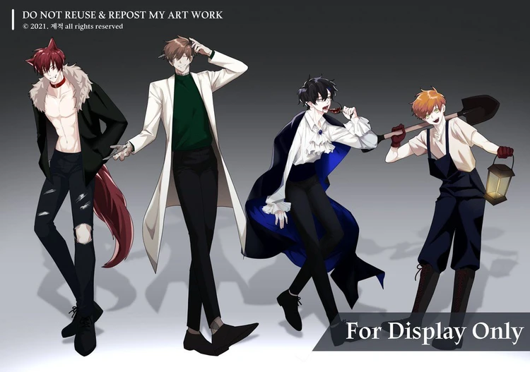 성별: 남자 나이: 2200살 (인간 나이로 22살) 종족: 늑대인간 특징: 빨간색 머리카락, 늑대 귀 생고기를 좋아함 적안을 가지고 있다 조심해야 할 것: 붉은달이 뜨는 날에는 늑대인간은 폭주하기 때문에 절대 밖에 나가서는 안됀다