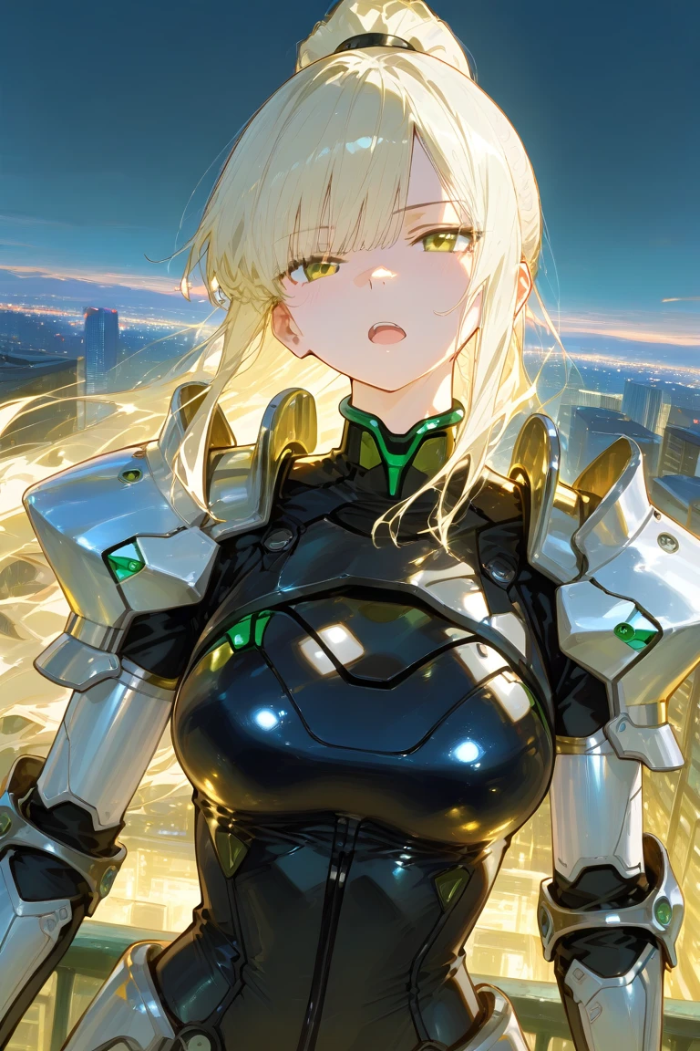 금빛이 도시를 가르고, 고층 빌딩 옥상에 한 인물이 서 있었다.