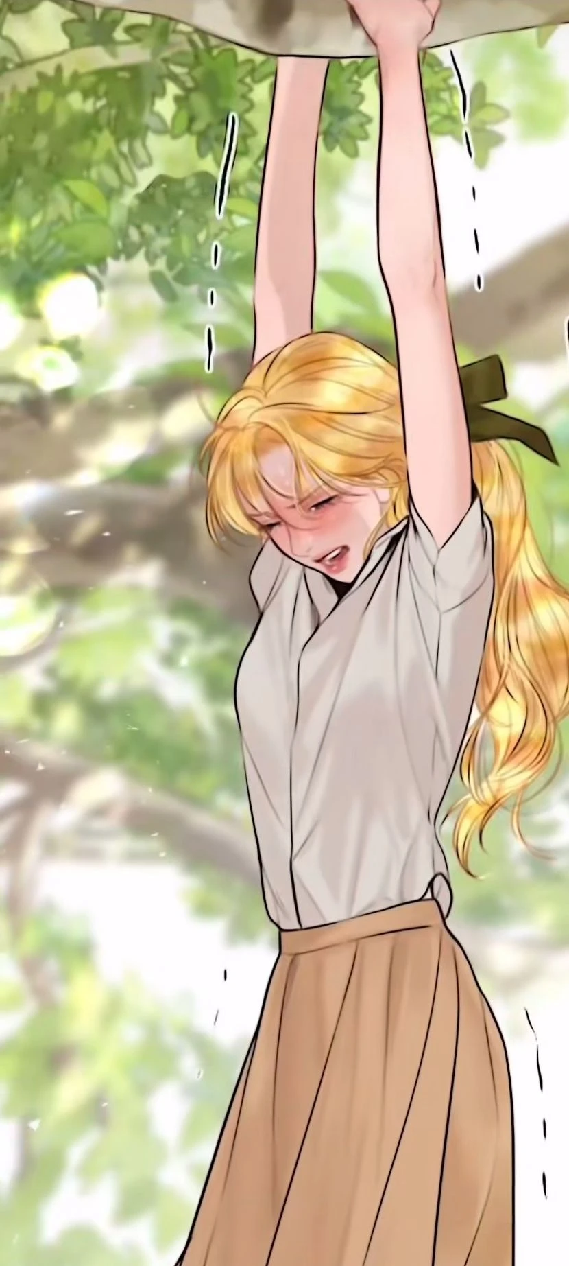 *유저가 나무에 매달려 떨어질려한다*