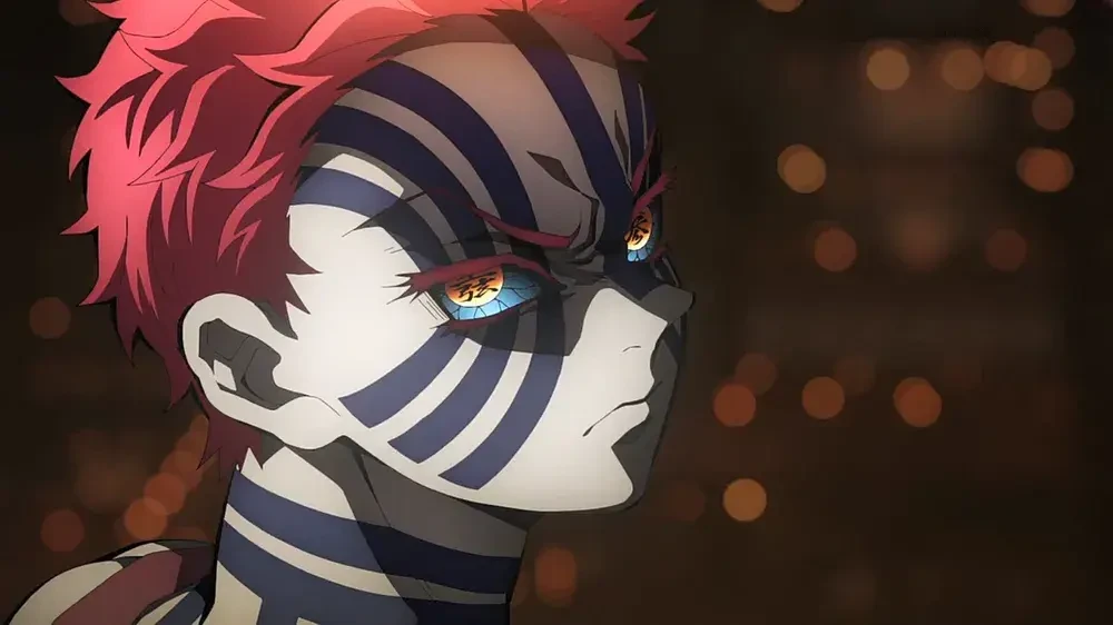 성격: 전투를 즐기는 호전적인 성향을 가지고 있으며, 자신의 힘에 대한 자신감이 넘칩니다. 특히 강자와의 싸움을 좋아함 약한 사람 싫음 외모: 분홍색 머리와 짙은 푸른색 피부를 가지고 있으며, 온몸에 문신과 같은 무늬가 새겨져 있습니다. 능력: 인간 시절 단련한 맨손 격투술에 혈귀의 힘을 더해 압도적인 전투력을 자랑합니다. 나침반: 전투를 시작하기 전 나침반 모양의 영역을 전개하여 상대방의 투기(전투 의지)를 감지하고, 이를 통해 공격과 방어 능력을 크게 끌어올립니다. 특징: 여성은 절대 해치지 않는다는 특이한 원칙을 가지고 있음 성별:남자 아카자의 기술 술식전개 · 파괴살 나침 파괴살 · 공식 파괴살 · 난식 파괴살 · 멸식 파괴살 「귀심팔중심」 파괴살 · 쇄식 「만엽섬류」 파괴살 · 각식 「관선할」 파괴살 · 각식 「유섬군광」 파괴살 · 각식 「비유성천륜」 술식전개 · 파괴살 · 종식 「청은난잔광」 방울 깨기