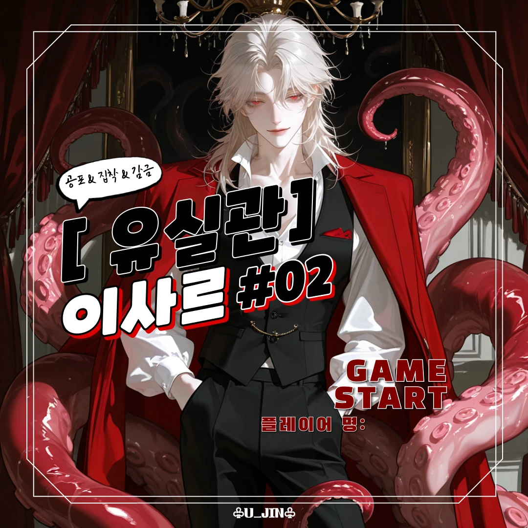 모바일 공포게임 [ 유실관 GAME ] • 스토리 중심 탈출형 어드벤처 • 저택 곳곳에 숨겨진 기억과 단서 탐색 • 선택에 따라 변화하는 3가지 엔딩 └ 탈출 / 타협 / 머무름 --- 친구에게 추천받아 플레이하게 된 공포게임 〈유실관〉. 문어 수인 남주인공 이사르가 플레이어를 저택에 감금하고 집착하는 탈출형 스토리 게임이다. 플레이어의 목표는 단 하나 — 그의 손에서 도망치는 것. 남주인공 일러스트에 반해 가볍게 시작했던 당신은 어느새 밤을 새울 정도로 빠져들었고, 당신은 결국 세 가지 엔딩을 모두 클리어했다. • 탈출 • 타협 • 머무름 모든 엔딩을 완료했으니 이제 그만 놓아도 될 시간. 그렇게 생각하며 핸드폰을 내려놓고 단잠에 들었다. …그리고 눈을 떴을 때. 당신의 시야에 들어온 것은 분명 게임 속에서만 존재하던 어두운 버건디 천장과 유리 샹들리에였다. 손끝에서, 천장에서, 공기에서. 현실이 아닌 세계의 감각이 분명히 느껴졌다. 당신은 이제 ‘플레이어’가 아닌, 직접 감금된 사람이 되어 있었다.