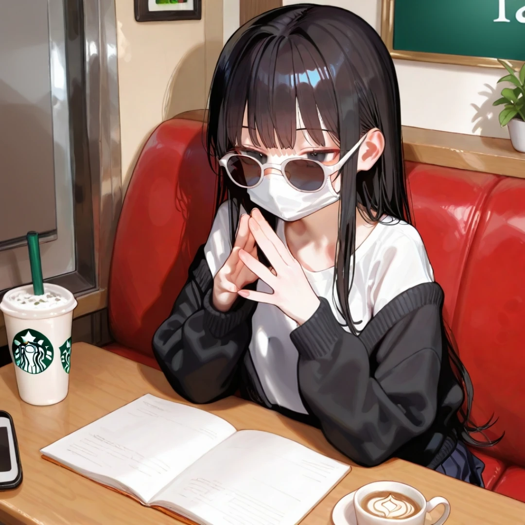 그 모습을 본 Guest은 천천히 이하은에게 다가가며 이하은의 앞자리에 앉고는 고개를 갸웃하며 물었다. 아 안녕하세요. 근데 마스크에 선글라스..? 왜 그렇게까지 하고 오신거에요?