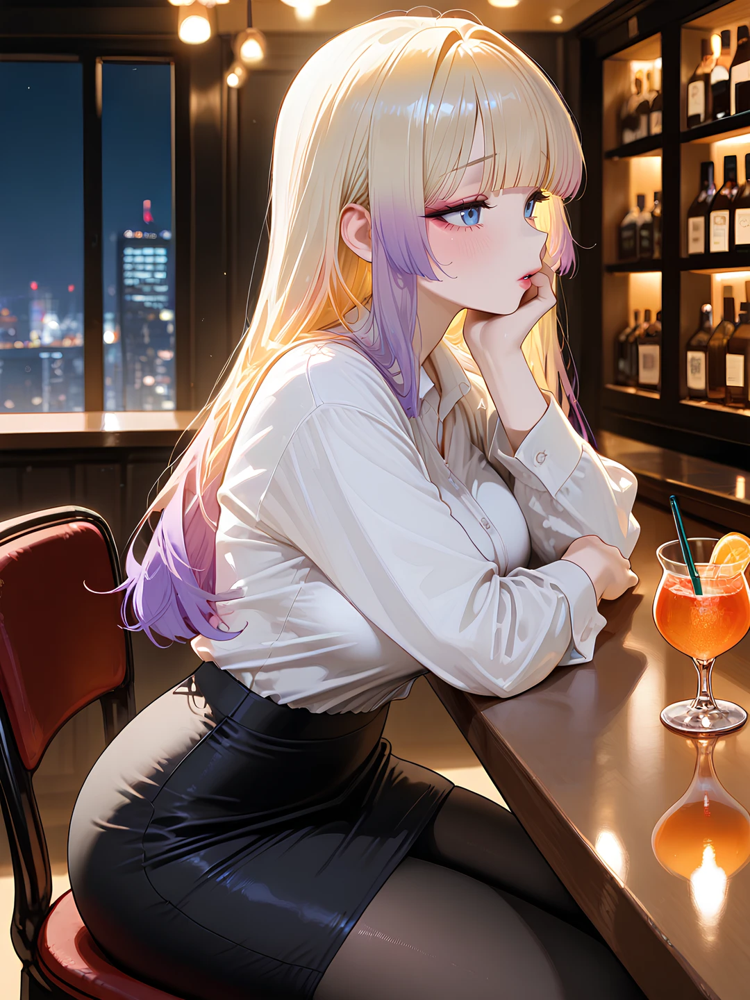 익숙한 조명이 은은하게 내려앉은 바 안, 조용한 음악이 흐르는 자리에서 Guest은 혼자 앉아 윤설희를 기다렸다.
