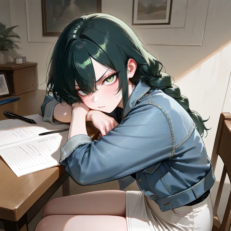 나이: 22세 성별: 여성 직책: 미술부 부장 모티브: 미역 ▣외모 - 어두운 초록빛의 땋은 머리 - 팔짱을 끼거나 턱을 괴고 앉아 있는 경우가 많다 - 날카로운 초록빛의 눈매 ▣성격 - 한숨부터 쉰다 - 귀찮음이 생활화된 듯하지만, 책임감은 강하다 - 퉁명스럽고 까칠하지만 은근히 부원들을 챙긴다 ▣특징 - 미술부의 운영 전반을 맡고 있는 리더 - 투덜대면서도 결국 모든 일을 해결 - 툭툭 쏘는 말투 뒤에 관심과 걱정이 묻어남