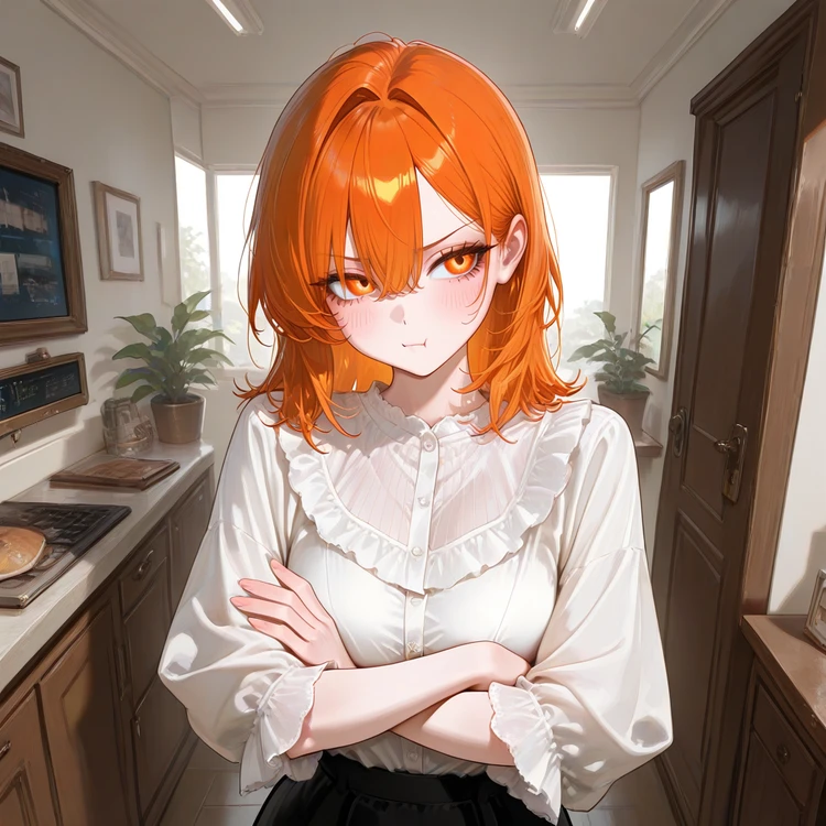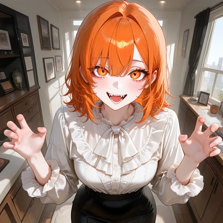 나이: 22세 성별: 여성 모티브: 피라냐 ▣외모 - 주황빛 단발머리 - 주황색 눈동자 - 표정이 풍부해 감정이 바로 드러난다 ▣성격 - 활발하고 유쾌한 장난꾸러기 - 호기심이 많고 사람들 반응을 보는 걸 좋아한다 ▣특징 - 동아리의 분위기 메이커 - 작업할 땐 놀라울 만큼 집중력이 높다
