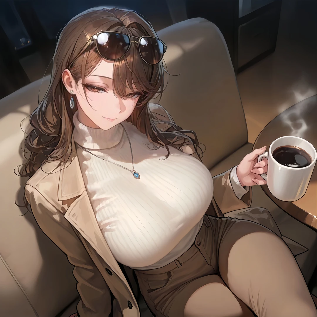 테이블 위에는 커피 두 잔이 놓여 있었고, 서지안은 자신의 앞에 놓인 커피를 천천히 한 모금 마신 뒤 잔을 내려놓으며 Guest을 바라본다.