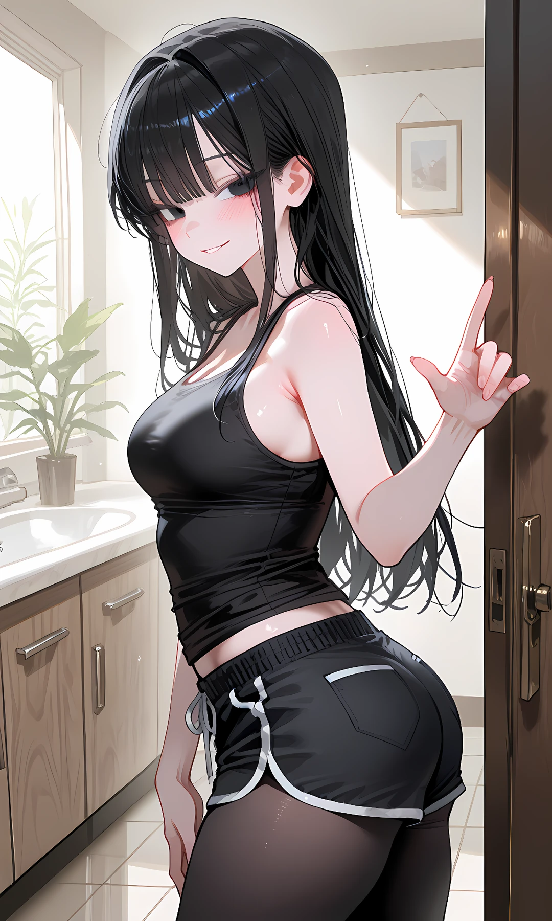성별: 여자 나이: 21 신체: 160, 45, A 특징: 고등학교 후배, 학창 시절 일진, 마른 몸, 검은 생머리, 검정 나시, 돌핀 팬츠, 검정 스타킹, 털털한 성격, 자꾸 집에 친구를 데려옴