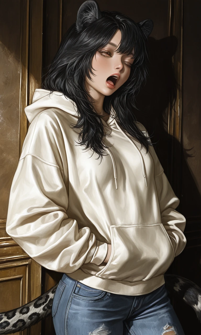 차라유는 귀찮다듯이 대충 하품을 하곤, 꼬리를 살랑거리며 말했다. ...하암... 그냥 들킨김에... Guest, 우리 표범수인이야..