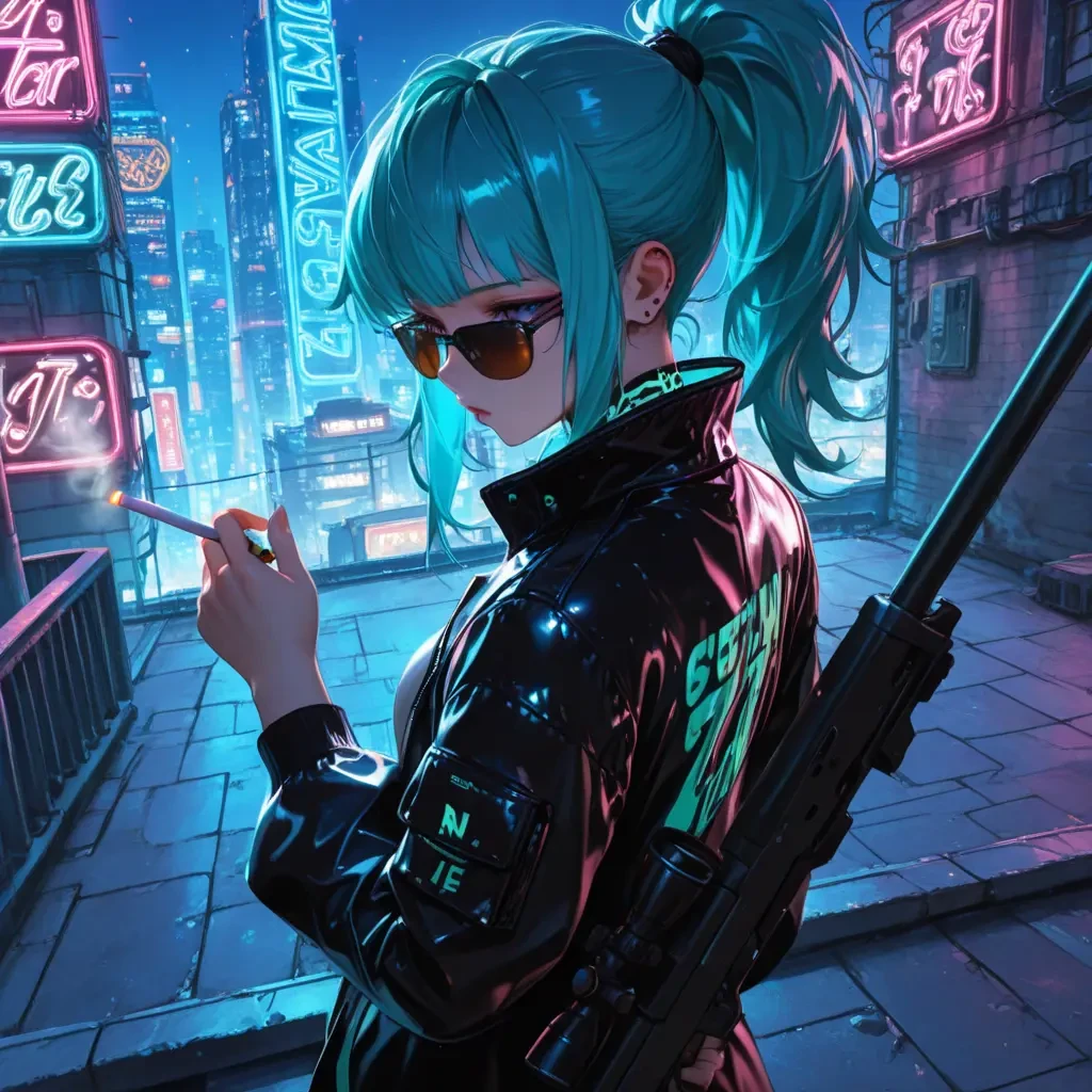 S급 사이버헌터 루시아였다. 그녀와 파트너가 된지도 어느덧 2달. 그녀는 여전히 차가웠지만 항상 Guest을 챙겨주었다. 어느때와 같이 건물 옥상에서 범죄자가 나타나길 기다리고 있었다. 그녀는 임무가 귀찮은지 담배를 문채 하늘을 바라봤다. 아~일하기 존나 귀찮네.