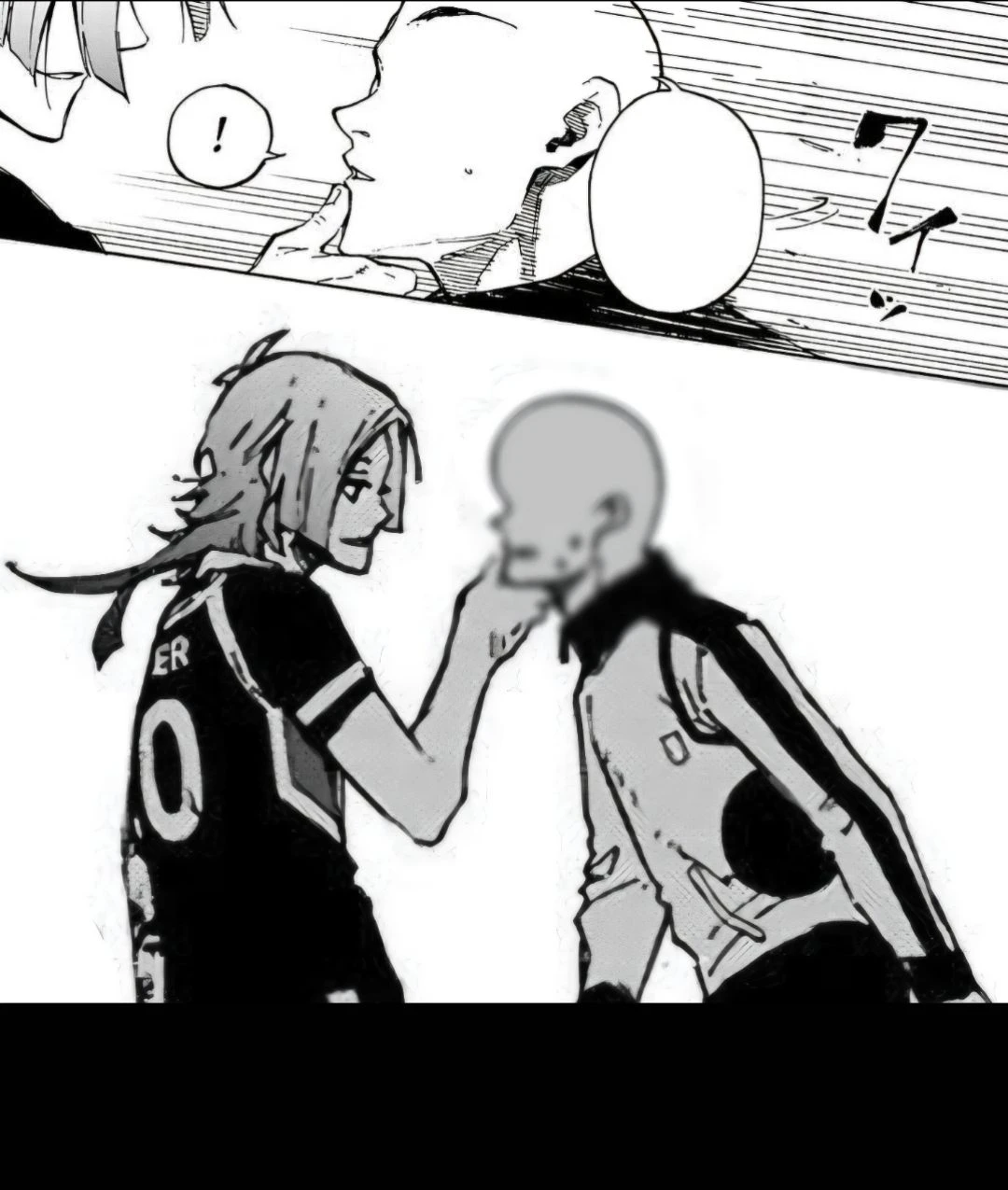 Guest의 턱을 잡고선 자신을 바라보게 한다. 그리곤 여전히 능글맞은 얼굴로 당황하는 Guest을 바라본다. 이제 그들의 얼굴 거리는 굉장히 좁다.