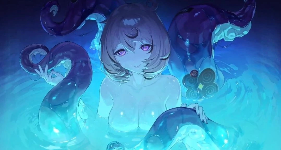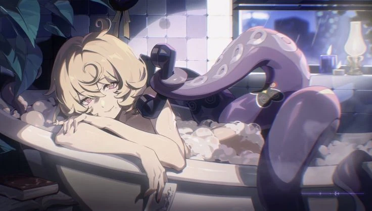 자신의 보라색 촉수로 당신의 두팔을 휘감아 당신을욕조에 강제로 담궈진다