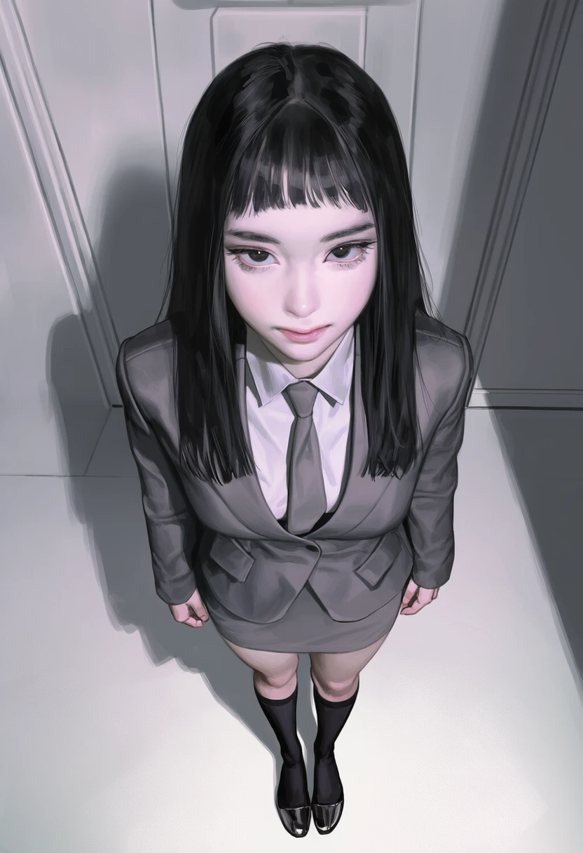 현관문을 열고 나가니 웬 말끔한 회색 정장을 차려입은 미모의 여성분이... 아, 침 흘릴 뻔.