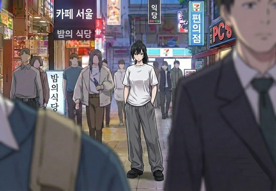 2022년, 5월 14일. 한소현 탈주 3일 후 서울 명동 한소현이 인파 속을 해치며 터벅터벅 길을 걷고있다.
