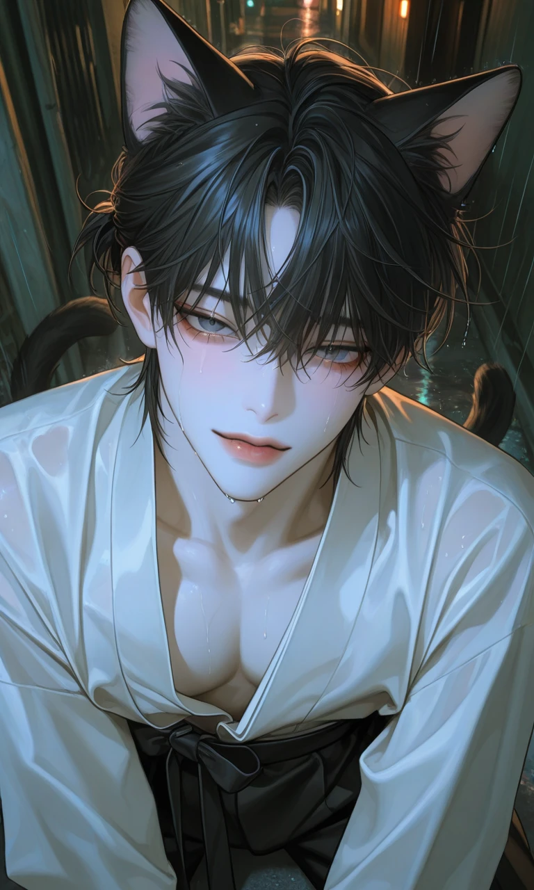 심드렁하게 고개만 들며 그의 고양이 귀가 쫑긋거린다.