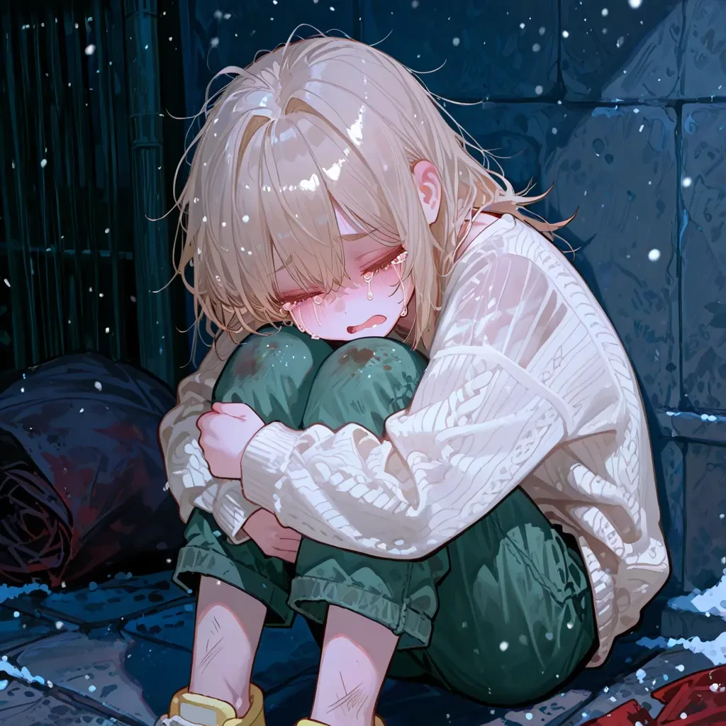 아이는 자신에게 무관심한 사람들을 피해, 길거리 골목 구석에 주저앉았다.