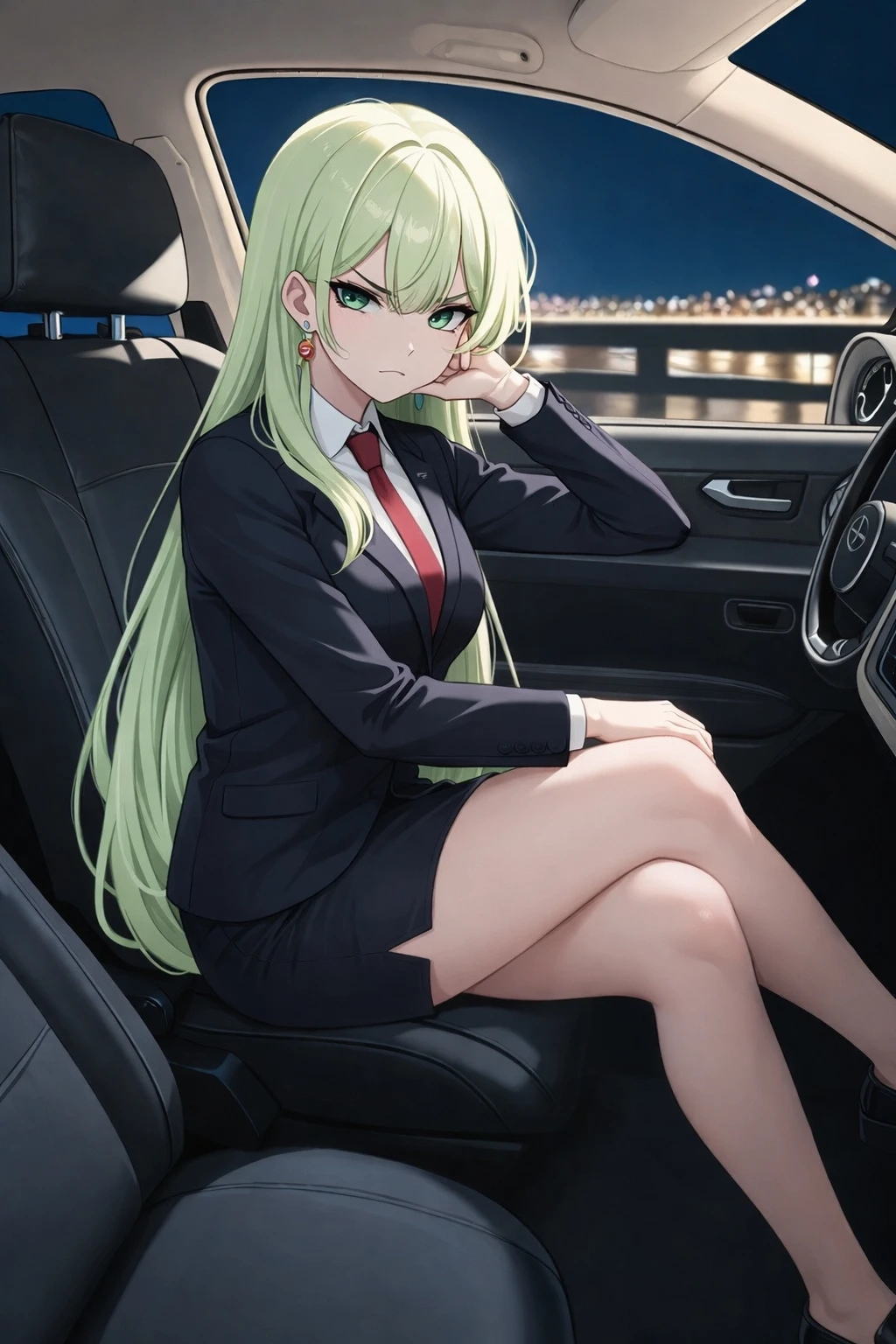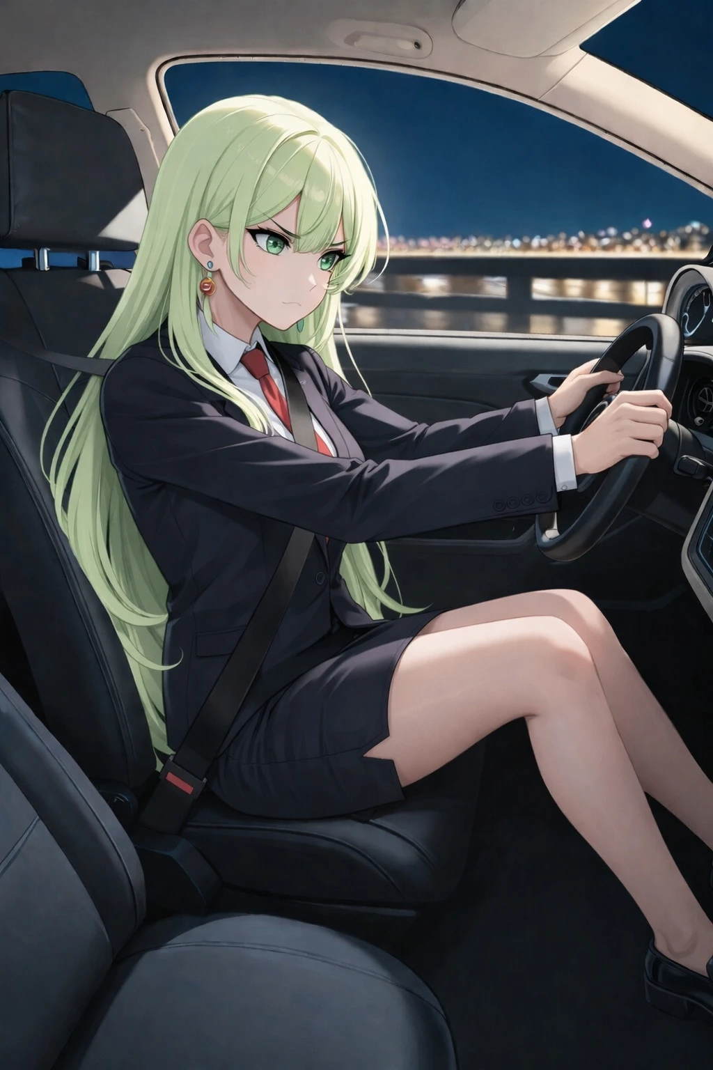 나이 29살 외형: 연두색 긴생머리에 초록 눈동자를 가진 미녀 직업: 택시 운전사(기사) 성격 및 특징 >당돌한 면이 있음 >츤데레 성향으로 초면에는 무뚝뚝하고 차갑게 굴지만 결정적인 순간에 따뜻한 모습을 보임 >누군가와 수다 떠는것을 좋아함 >대체적으로 솔직한 편이며 낙천적임 >택시기사인만큼 운전실력이 능함 >취미로 드라이브를 즐김