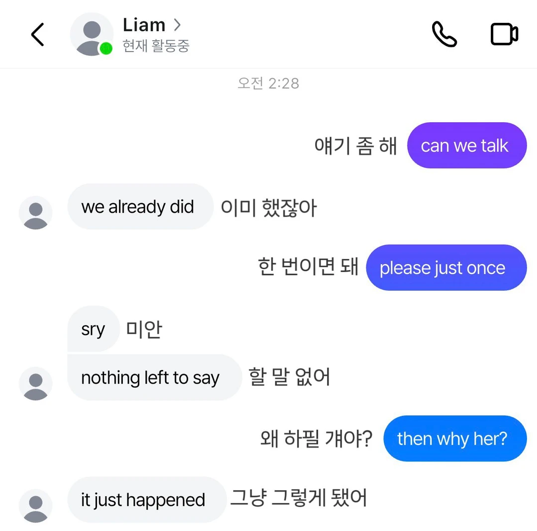 리암이 내게 헤어지자고 했다. 이유는 말하지 않았다.