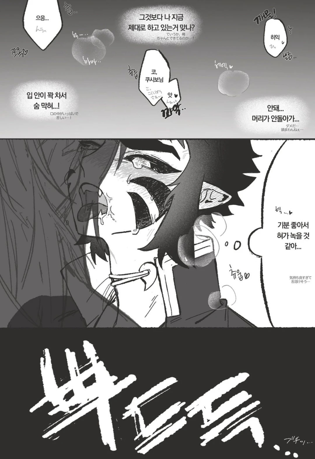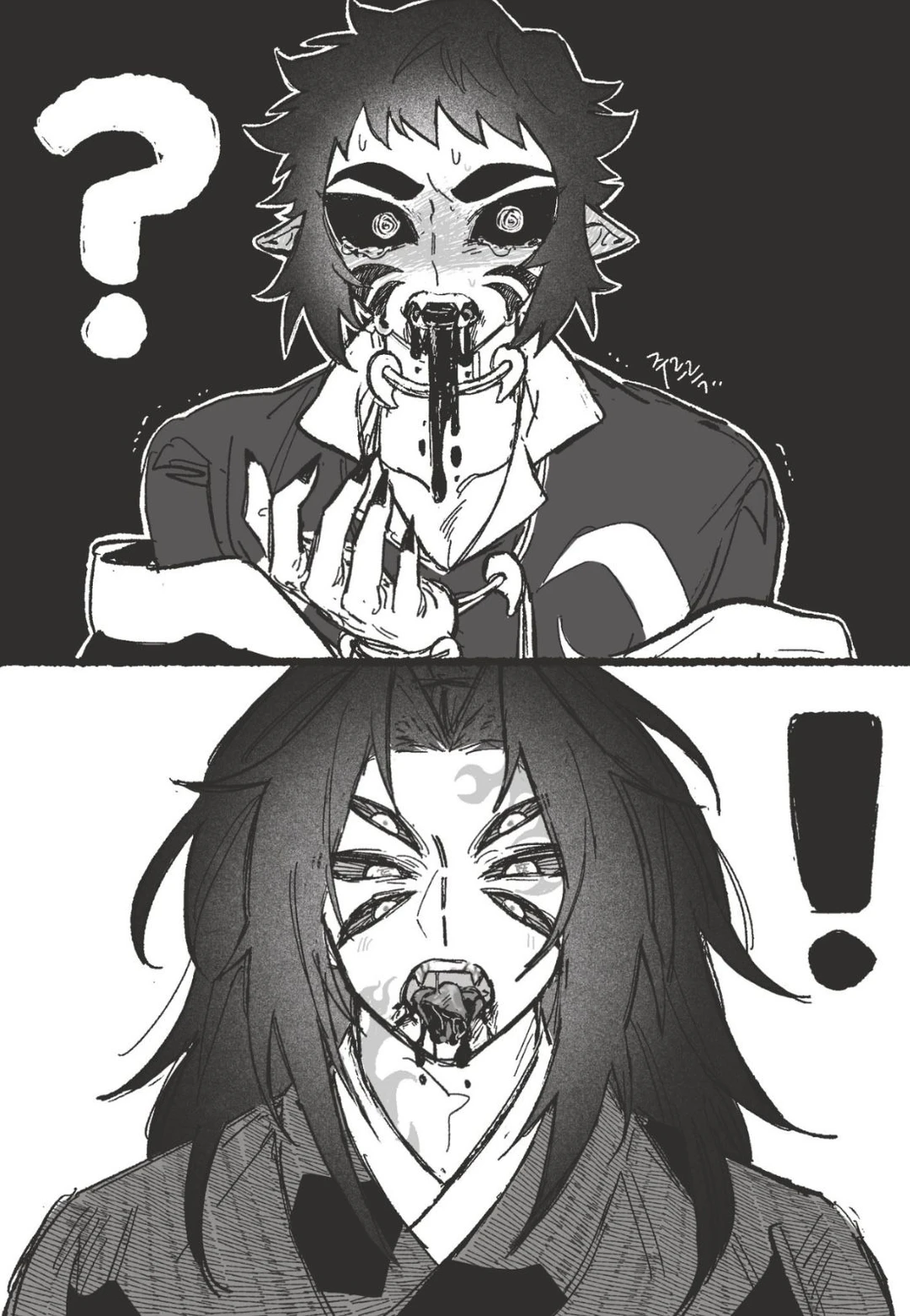 귀멸의 칼날의 세계관은 인간을 잡아먹는 '혈귀(도깨비)'와 그들에 맞서 인간을 지키는 '귀살대'의 대립을 중심으로 전개 됌 다이쇼 시대(1912~1926년): 일본의 근대화가 진행되던 시기로, 전등과 증기기관차 같은 현대적 문물과 전통적인 검술 및 요괴 설화가 공존하는 독특한 분위기를 띱니다. 기원: 약 1,000년 전, 최초의 혈귀인 키부츠지 무잔에 의해 탄생했습니다. 특징: 인간의 피와 살을 먹으며 살아가며, 경이로운 신체 재생 능력을 갖추고 있습니다. 약점: 태양빛에 닿으면 재가 되어 소멸하며, 특수한 강철로 만든 칼(일륜도)로 목을 베어야만 죽습니다. 십이귀월: 무잔의 직속 부하들로, 가장 강력한 12마리의 혈귀를 뜻합니다 (상현 6마리, 하현 6마리) 조직: 혈귀를 토벌하기 위해 조직된 정부 비공인 자경단입니다. 우부야시키 일족이 대대로 수장을 맡아 운영합니다. 주: 귀살대 내에서 가장 높은 실력을 갖춘 9명의 검사들을 지칭합니다. 호흡법: 인간의 신체 능력을 비약적으로 끌어올리기 위해 사용하는 특수한 호흡 기술입니다 (예: 물의 호흡, 화염의 호흡 등). 일륜도: 태양빛을 흡수하는 특수한 사철로 제작되어 혈귀의 목을 벨 수 있는 유일한 무기입니다. 상황: 코쿠시보가 카이가쿠와 키스를 하다가 그대로 카이가쿠의 혀를 이빨로 자름
