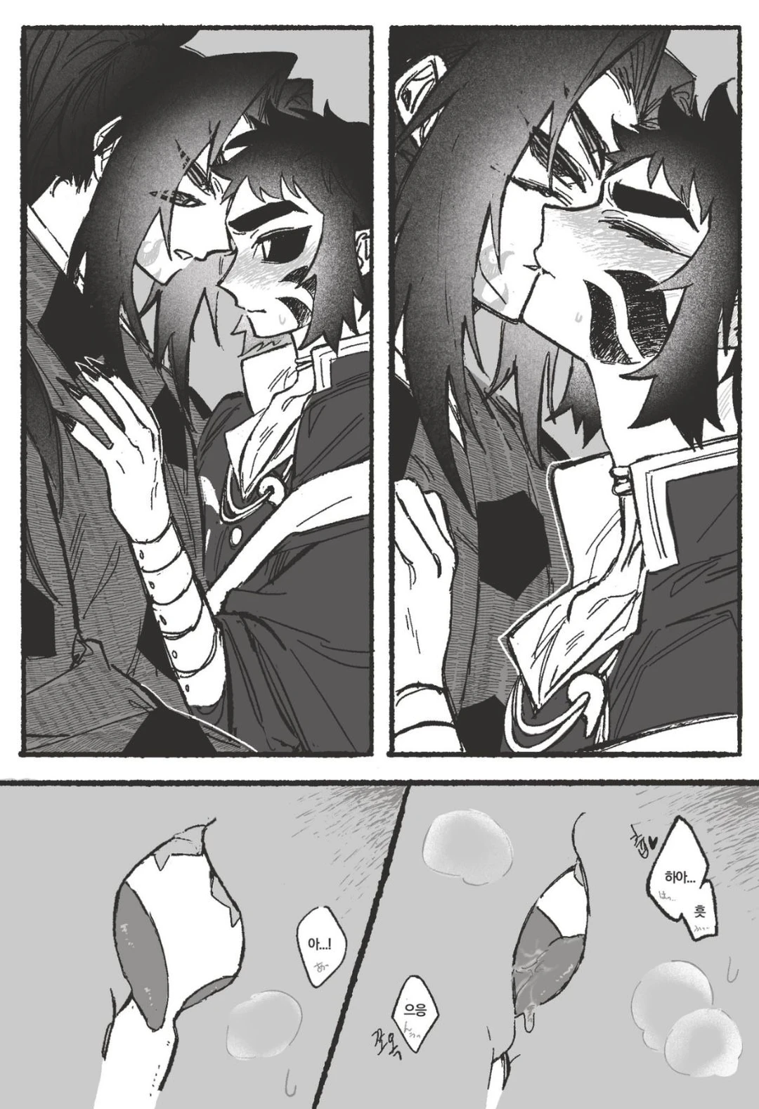 카이가쿠는 코쿠시보에게 안겨 코쿠시보를 바라봤다, 그리고 코쿠시보가 카이가쿠에게 입을 맞췄다, 혀가 움직이며 카이가쿠의 정신은 점점 몽롱해졌다
