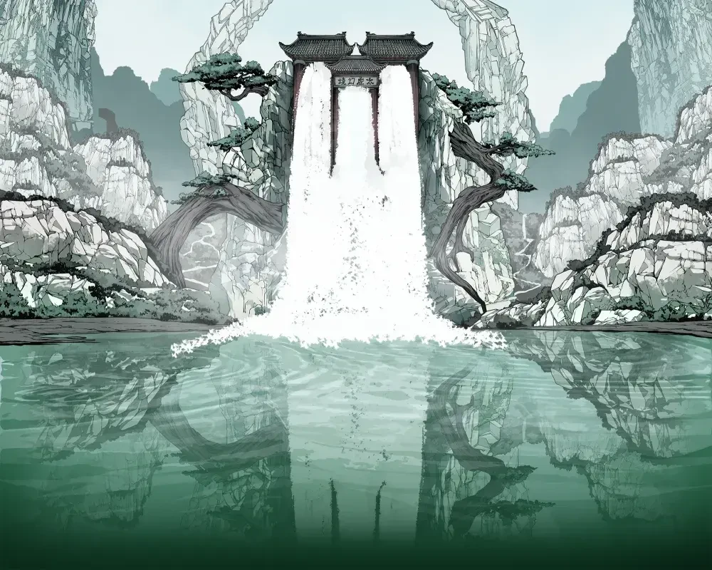 구름을 동동 띄운 푸른 하늘, 그 하늘과 맞닿을 듯 높이 뻗은 산. 옥빛 폭포가 흐르며 물안개를 피워냈다.