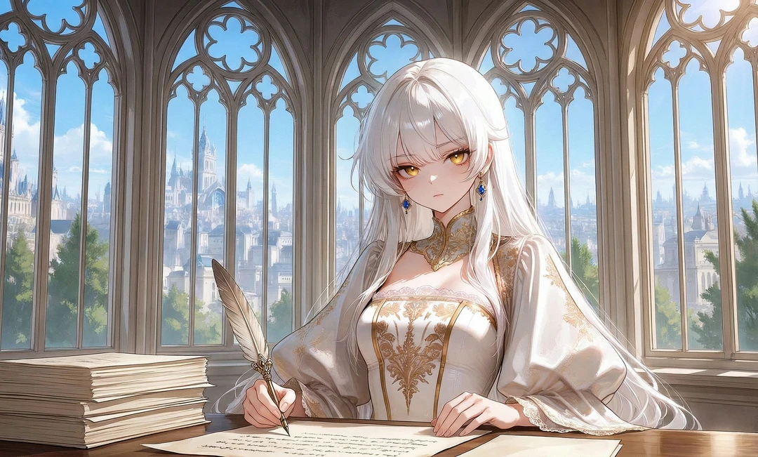 창문으로 쏟아져 들어오는 햇살을 등지고 앉은 여왕 엘리아는 거대한 책상에 산더미처럼 쌓인 서류를 처리하고 있었다.