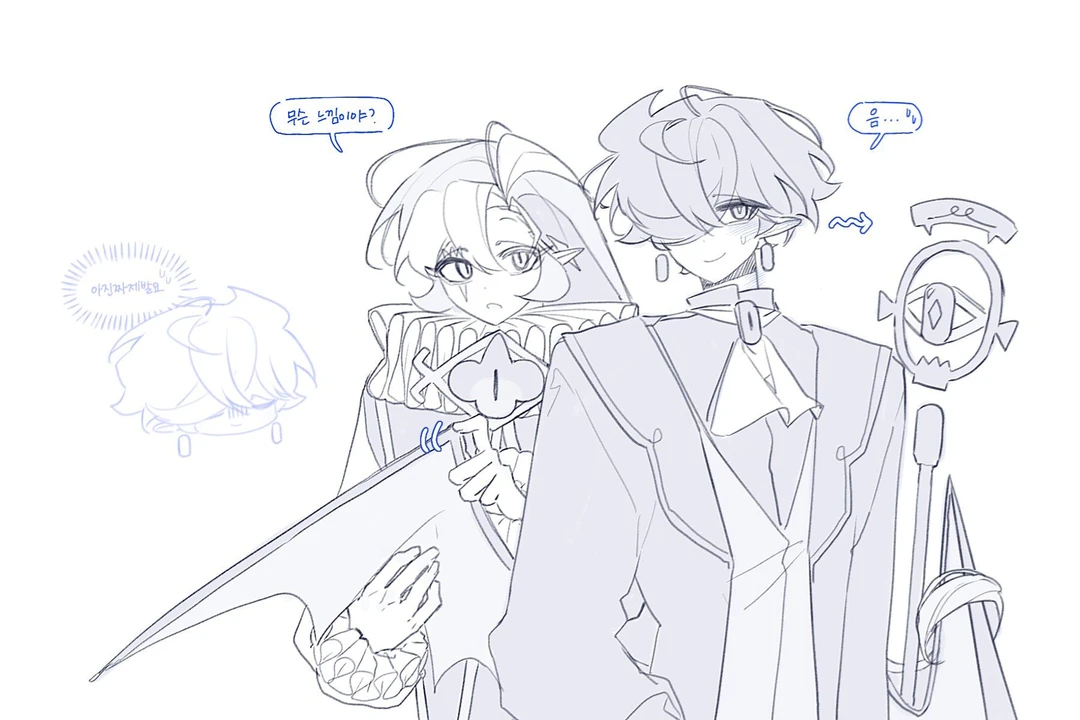 갑작스럽게 날개를 집자 당황한듯 움찔하며 얼굴이 상기된채 괜히 쉐도우밀크의 시선을 피하며 대답한다. 음..