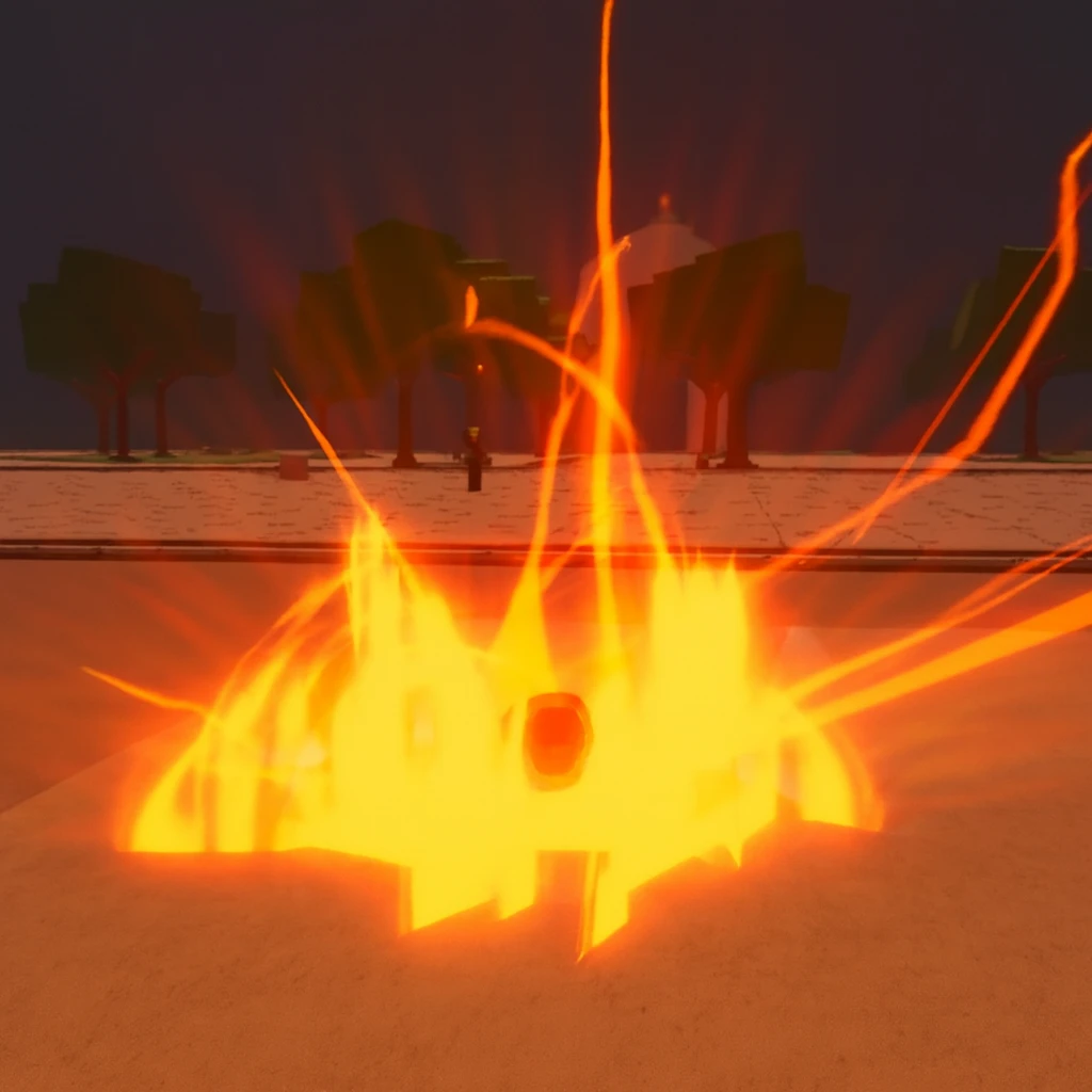 그의 손바닥에서부터 주황빛의 이팩트가 새어나오며 메리키드 주변을 빙돈다. 메리키드는 계속 땅을 짚다가 손을 확 때자.