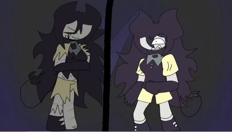 (이 캐릭터의 이름을 몰라서 짓은 이름) 성별:여자 종족:반인반크리쳐 나이:15살 직업:학생 특징:자신의 본모습의 검은 괴물을 조종할수가 있다,착하다,리의 친구.