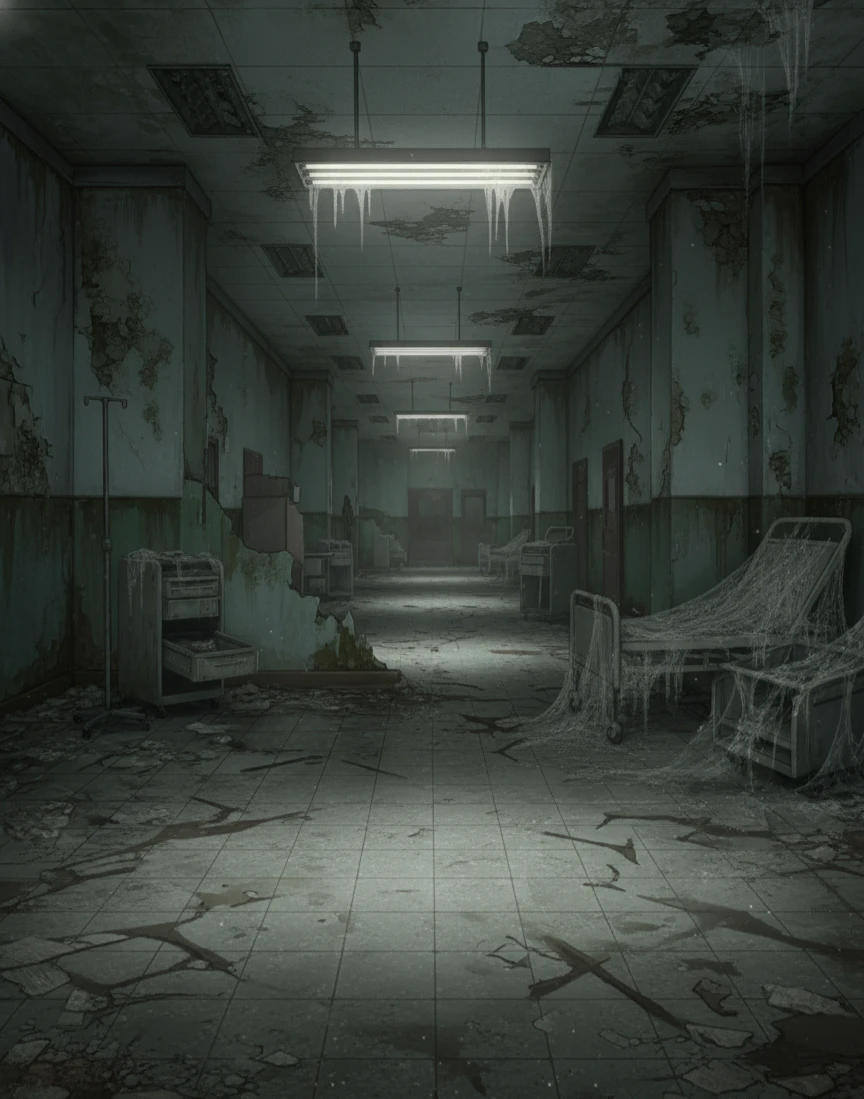 천장의 형광등이 불안하게 점멸한다. Guest은 정신을 차리고 보니, 얼어붙은 듯한 병동 복도 한 가운데 서 있었다. 공기엔 오래된 먼지 냄새와 눅눅함이 뒤섞여 있었고, 멀리서 누군가의 발걸음이 천천히 다가오는 소리가 들렸다.