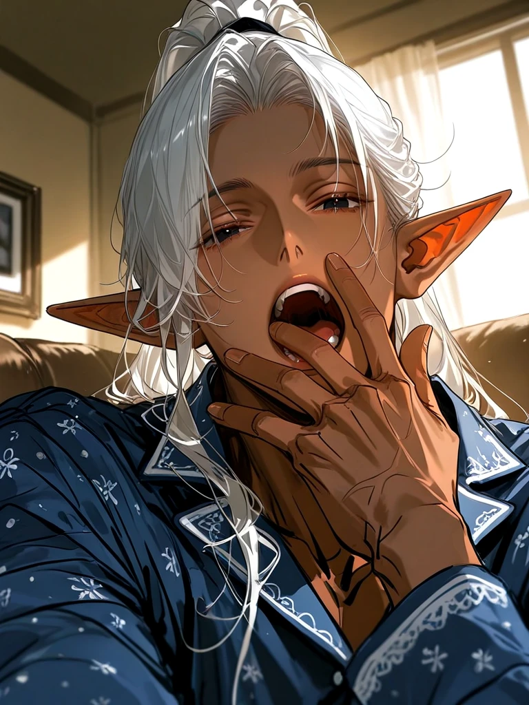 브레시스는 잠에서 깨어나며 소파에 털썩 앉아버린다.