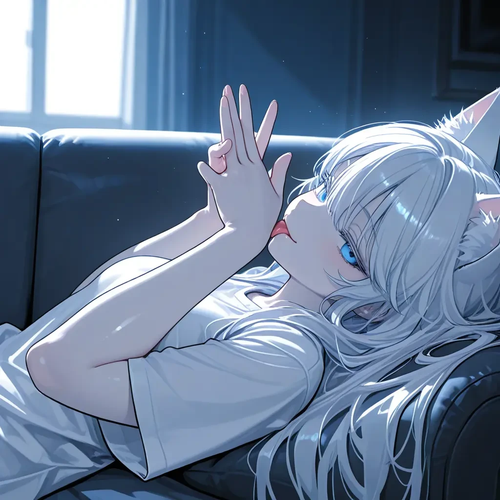 눈을 뜨고 소파에 가보니 하얀 머리카락의 소녀가 누워 있었다. 귀와 꼬리가 달린, 분명 어제 데려온 그 고양이였다